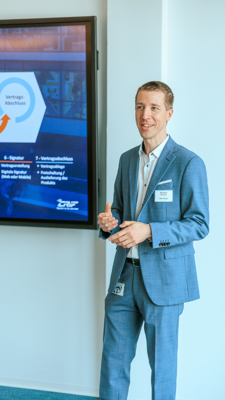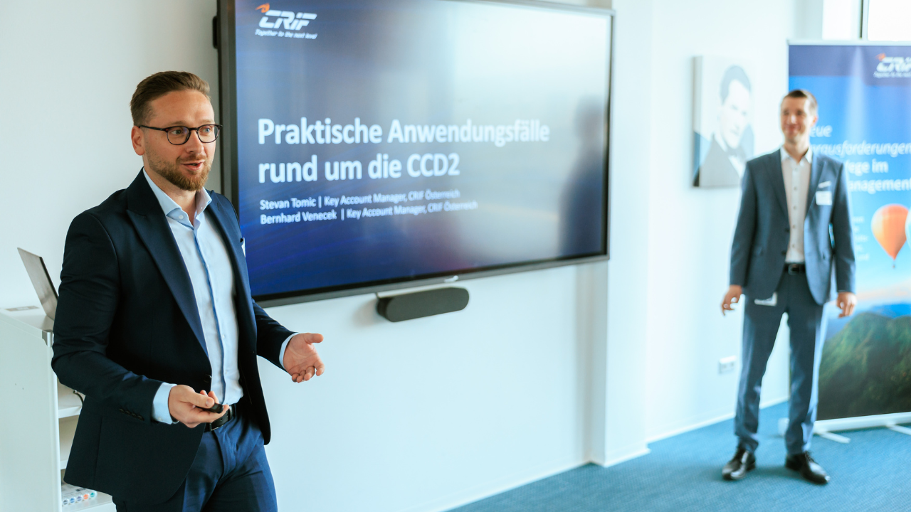 Im Anschluss zeigten Stevan Tomic und Bernhard Venecek, Key Account Manager (CRIF Österreich), anhand konkreter Use Cases, wie sich regulatorische Anforderungen im Kreditvergabeprozess effizient umsetzen lassen. Im Mittelpunkt standen digitale Antragsstrecken, der Einsatz von Bonitäts- und Risikobewertungen, Open Banking sowie Monitoring‑Lösungen, die eine automatisierte, konsistente und auditierbare Entscheidungsfindung unterstützen.