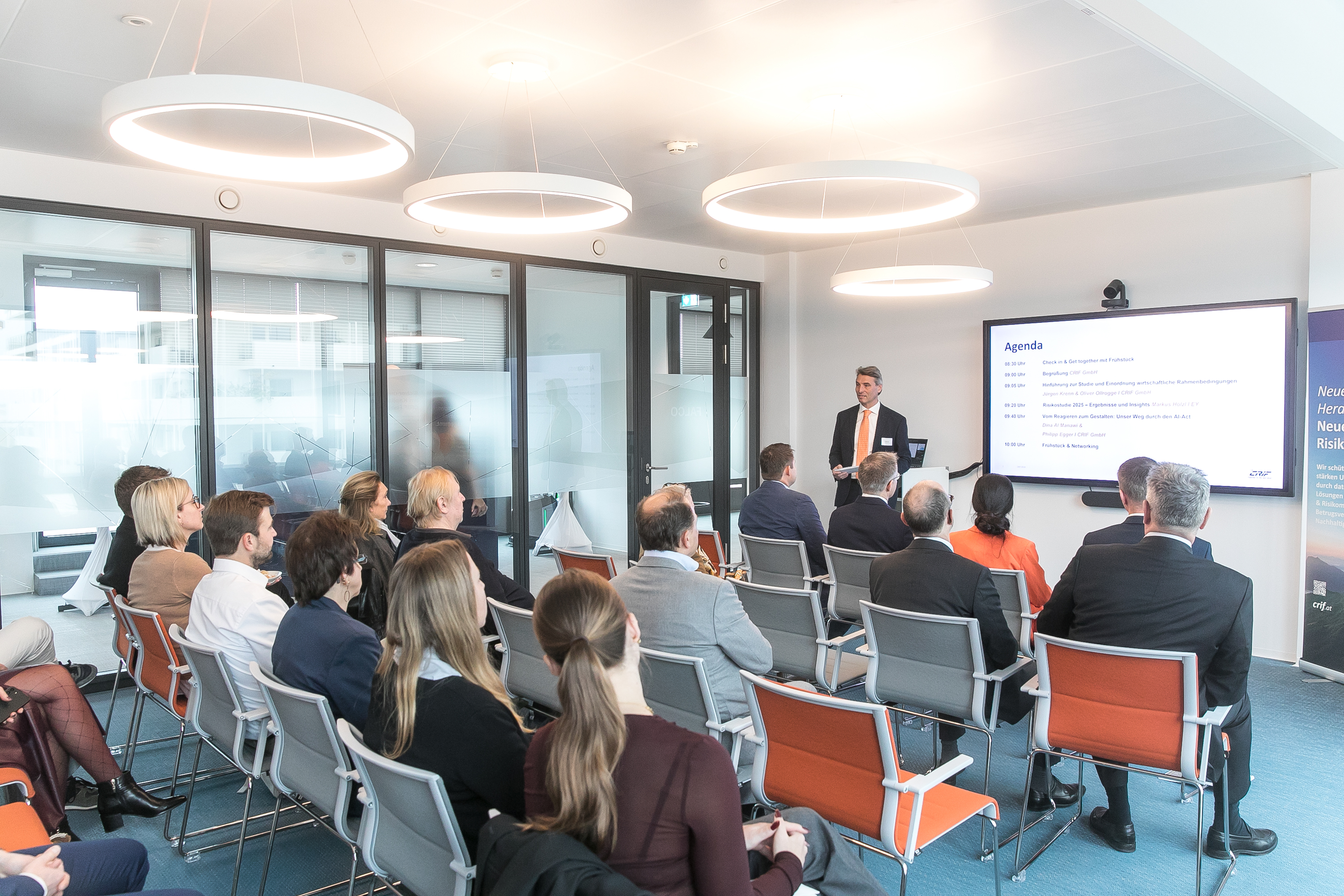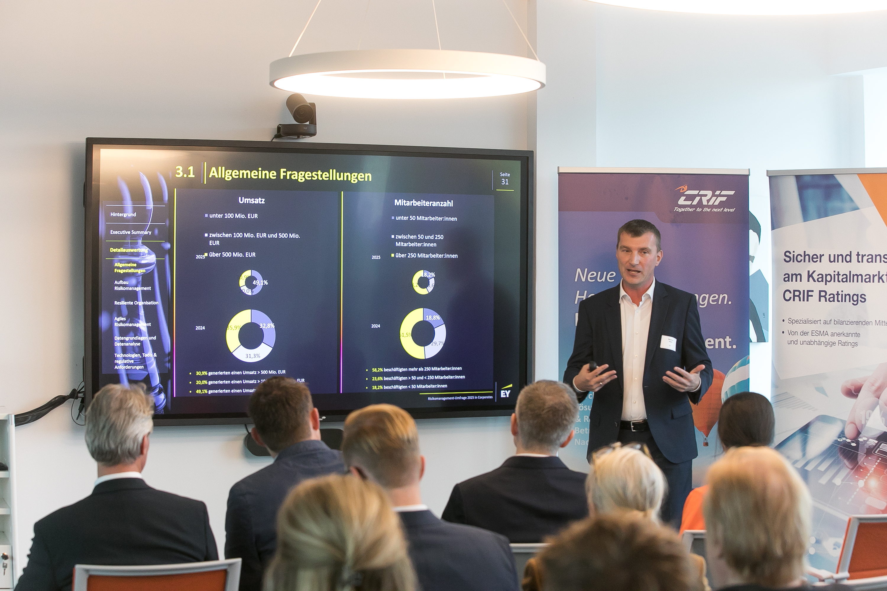Gäste aus Wirtschaft, Finanz und Industrie folgten der Einladung, um sich beim exklusiven Networking-Frühstück auszutauschen. Im Mittelpunkt der Veranstaltung stand die neue Risikomanagement-Studie 2025 mit aktuellen Erkenntnissen und praxisnahen Analysen von Expert:innen von EY und CRIF.
